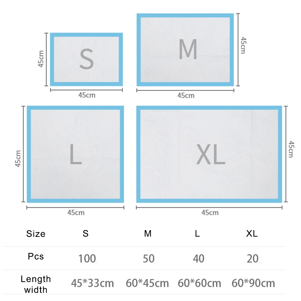 Название: одноразовый коврик для подгузников для домашних животныхМатериал: абсорбирующий хлопокЦвет: как на фотоРазмер:-S (100 шт./компл.): 33х45см-M (50 шт./компл.): 45х60 см-L (40 шт./компл.): 60x60 см-XL (20 шт./компл.): 60x90 см