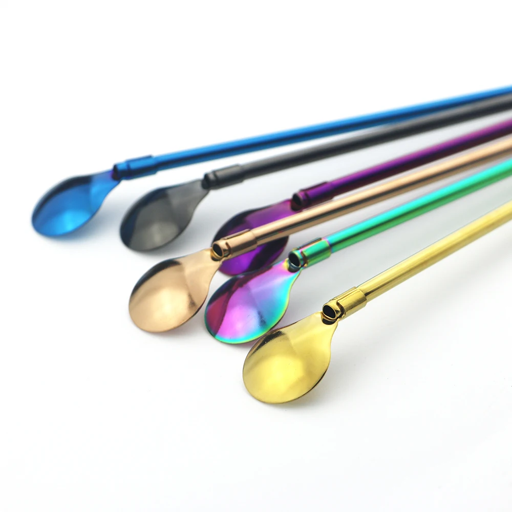 Многоразовая соломенная ложка 1810 из нержавеющей стали, разноцветная металлическая соломинка, для коктейлей, напитков, молока, бара, кофе, аксессуар для перемешивания