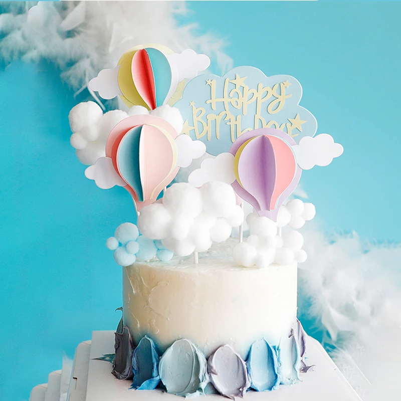 Воздушный шар, украшение для торта, украшение для торта на день рождения, помпон для торта, облака, радуга, единорог, украшение для вечеринки на день рождения, детский торт для будущей мамы