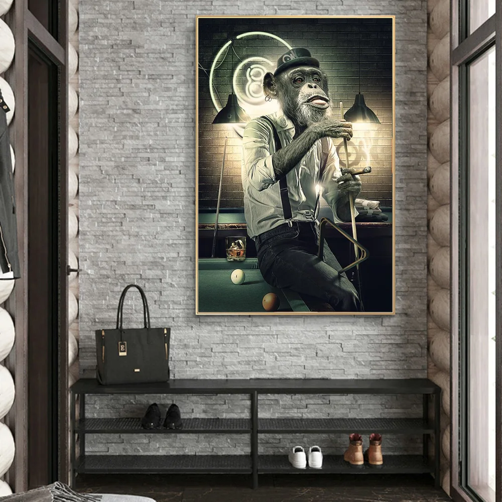 Плакат большого размера с животными курительной обезьяны, орангутан...
