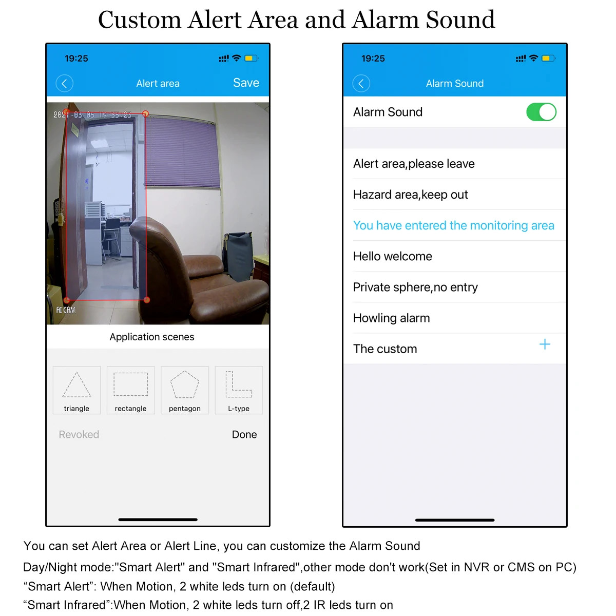 Только когда кто-то пройдет зону сигнализации, камера отправит сигнал тревоги, повысит точность сигнала тревоги.