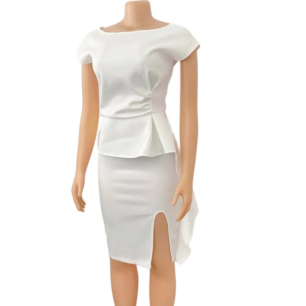 Платье женское Облегающее с баской, элегантное белое платье с корот...