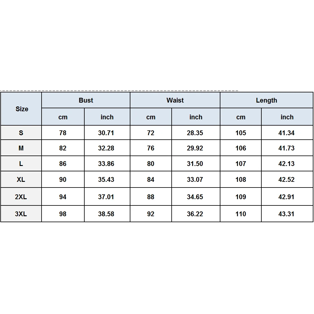 Размеры Бюст Талия Длина См Дюйм См Дюйм См Дюйм S 78 30,71 72 28,35 105 41,34 М 82 32,28 76 29,92 106 41,73 L 86 33,86 80 31,50 107 42,13 XL 90 35,43 84 33,07 108 42,52 2XL 94 37,01 88 34,65 109 42,91 3XL 98 38,58 92 36,22 110 43,31