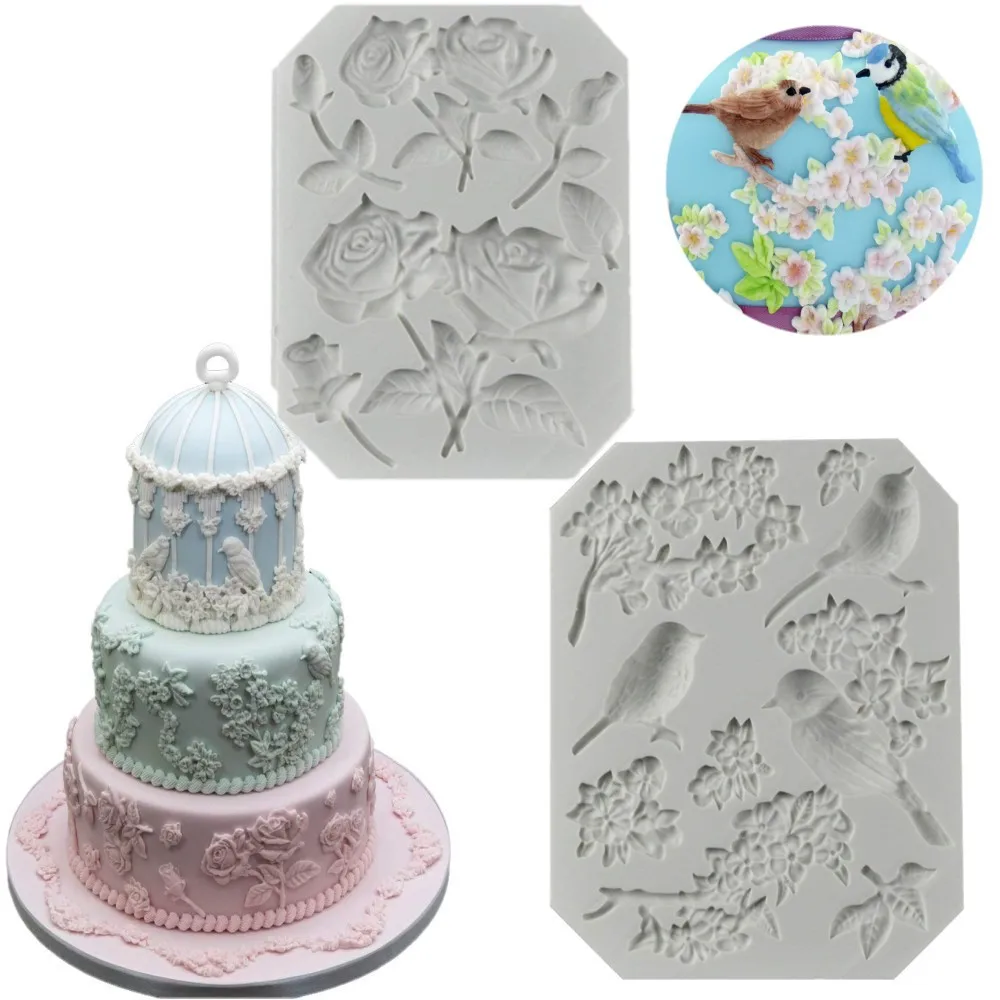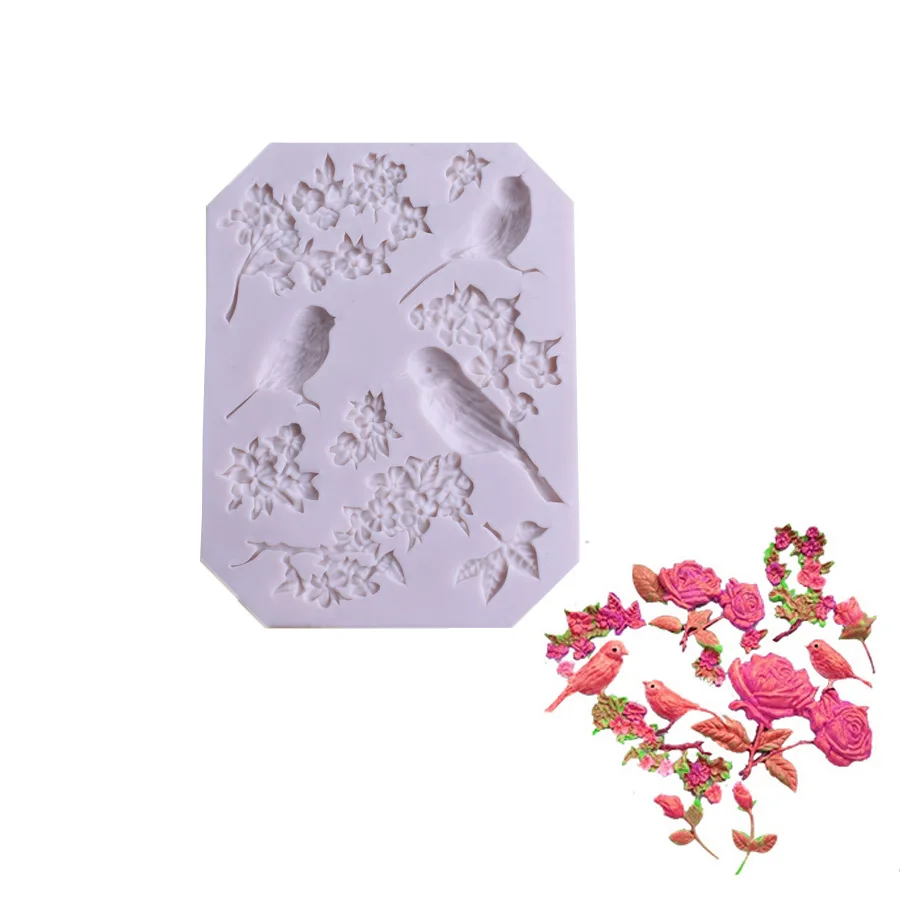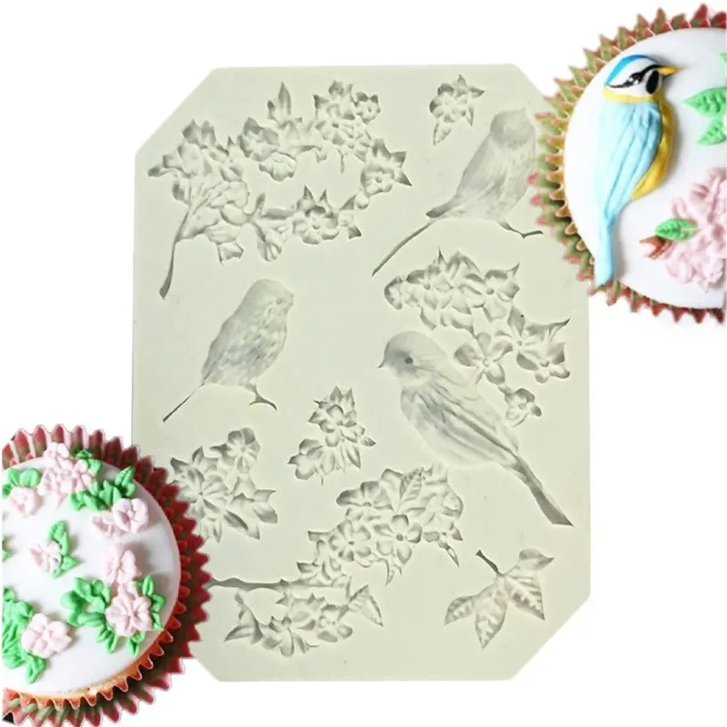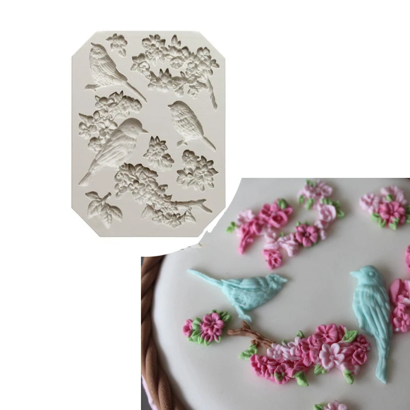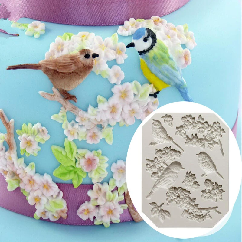 Силиконовая форма для помадки с птицами и цветами, инструменты для ...