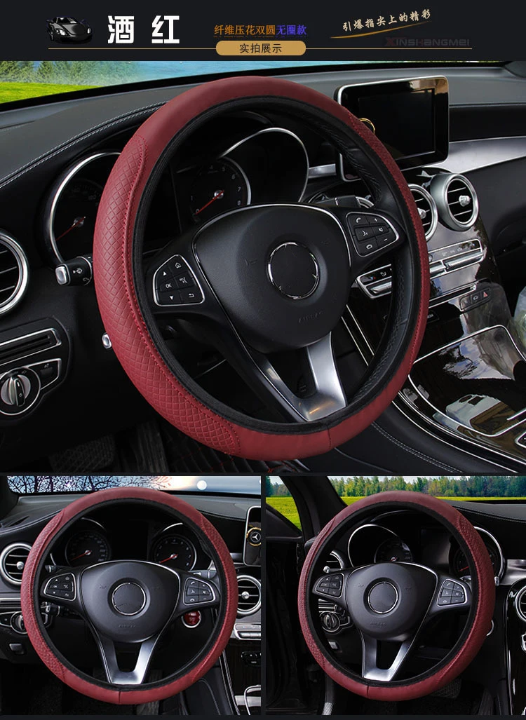 Противоскользящий чехол на руль автомобиля, универсальный кожаный ч...