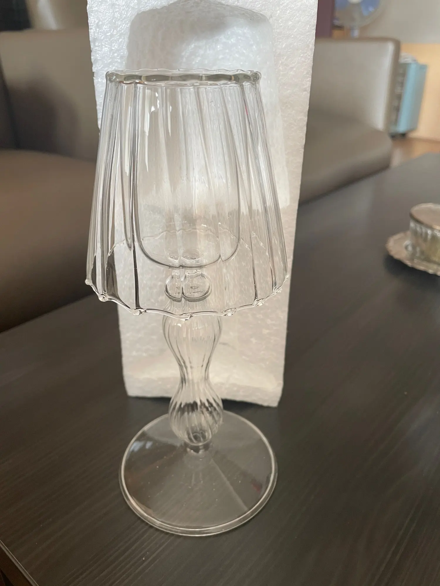Стеклянная настольная лампа обладает модным и элегантным выражением особой страсти и художественного вкуса.Стеклянная настольная лампа лучше всего подходит на беспламенную электронную свечу или чайный светильник, светильник s отражается на сияющем стекле.