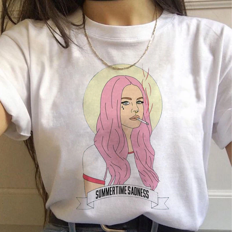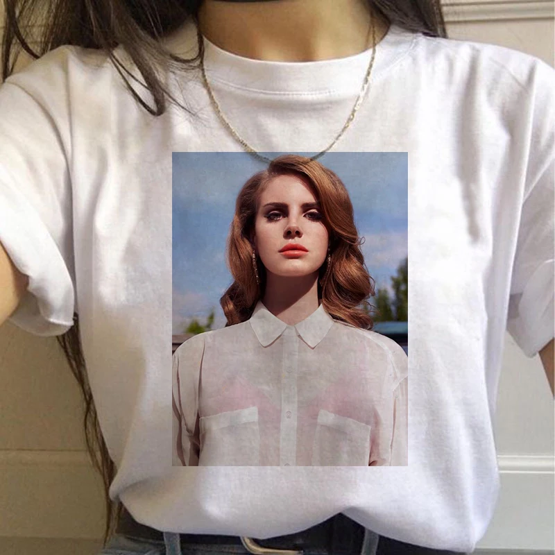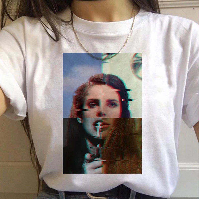 Новый Лана Дель Рей 90s эстетику печати корейский стиль футболки женский Harajuku Ullzang футболка Для женщин забавные вентиляторы свободного кроя с короткими рукавами