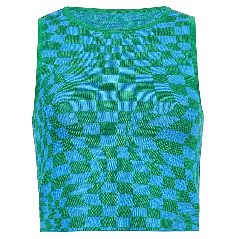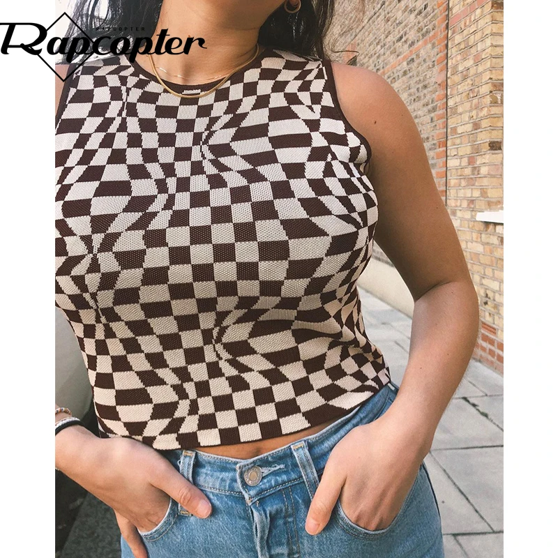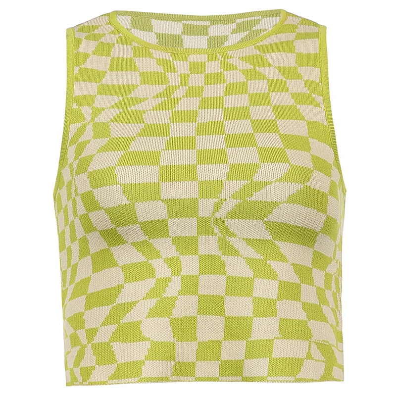 Топ женский клетчатый облегающий без рукавов в стиле Харадзюку