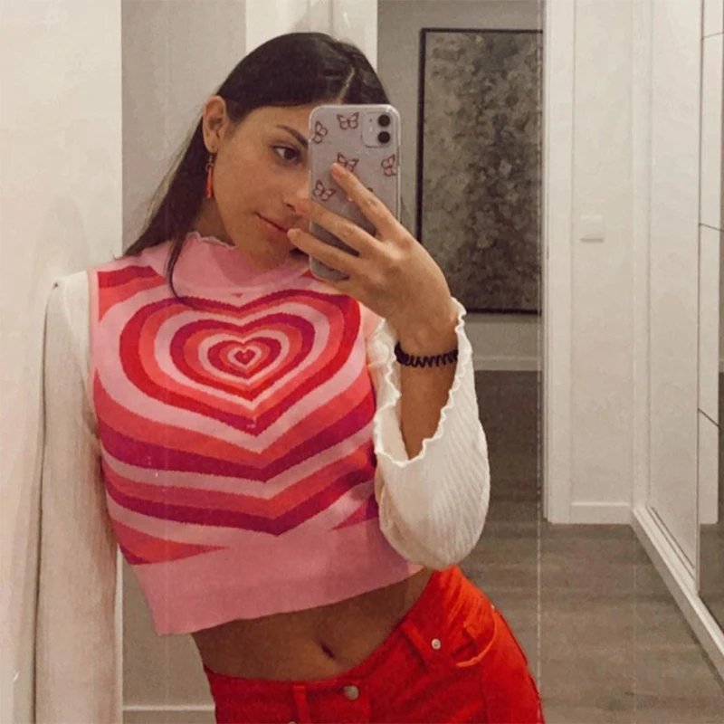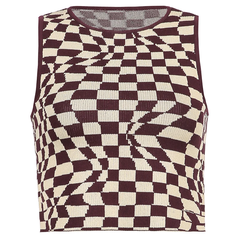 Вязаный клетчатый короткий топ для женщин без рукавов Y2k майка осн...