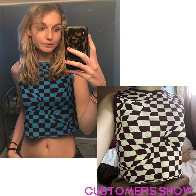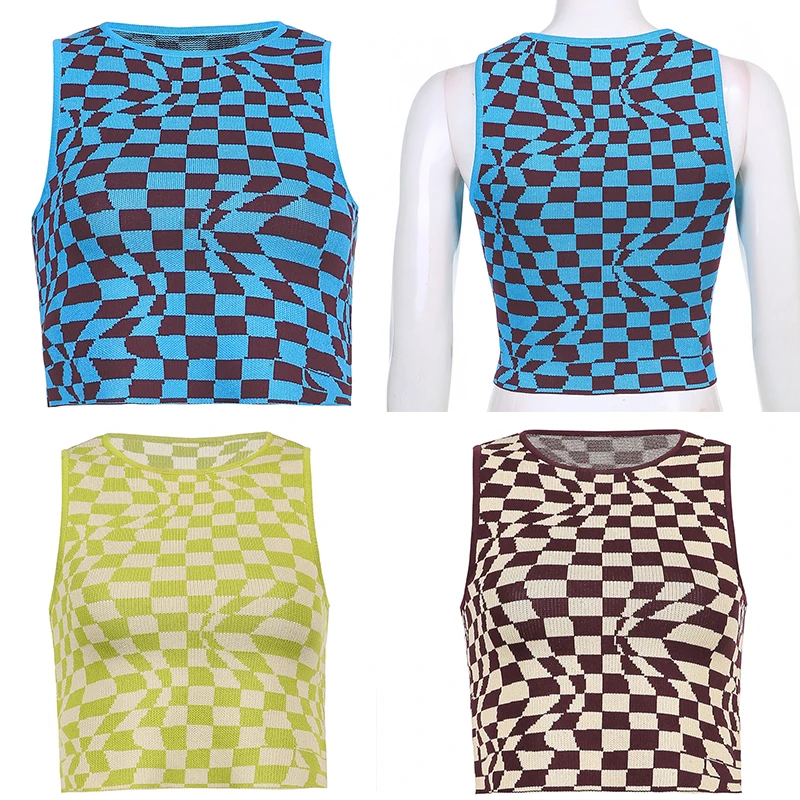 Женская Трикотажная майка в клетку Y2K, летние винтажные укороченны...