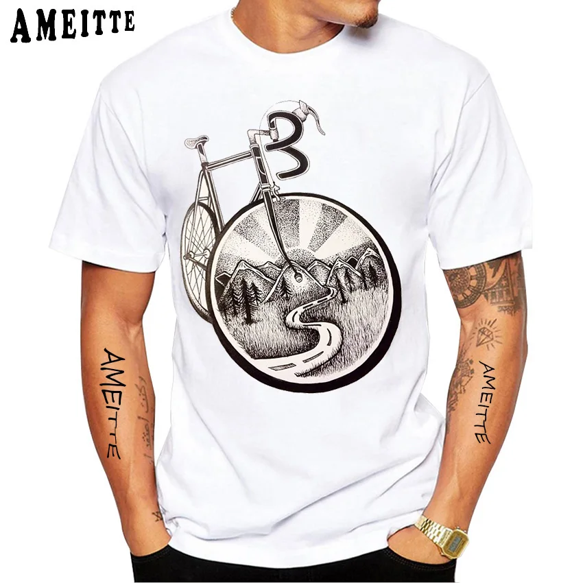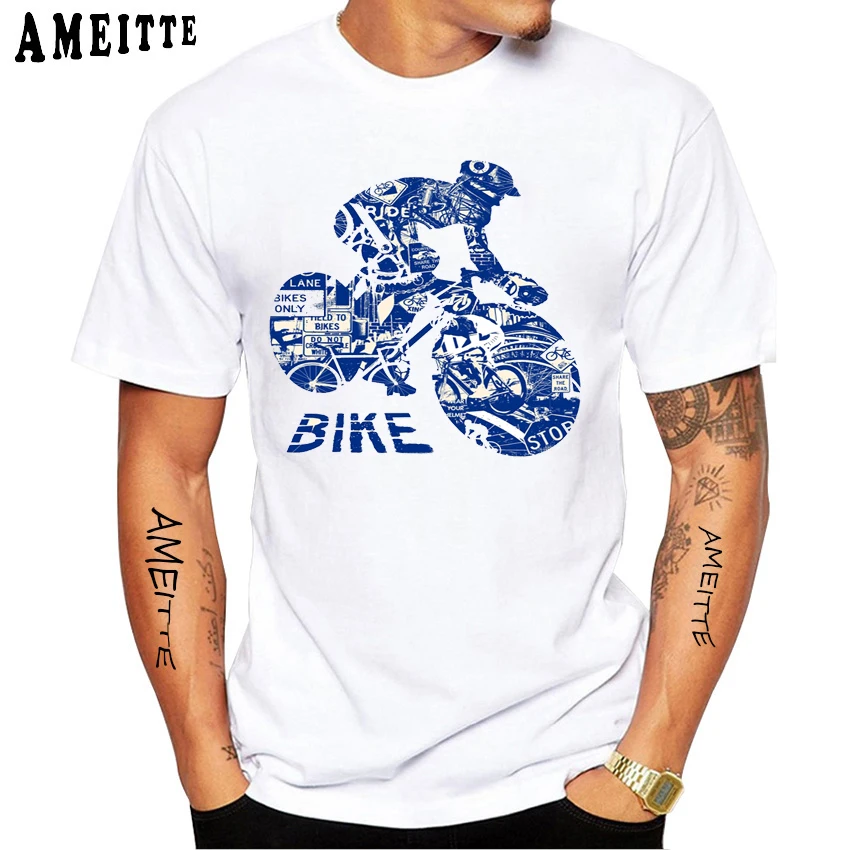 Новые летние мужские футболки с коротким рукавом Байк татуировки велосипедный шоссейный советы велосипеды путешествия футболка с рисунком велосипеды Спортивные Повседневные топы; Футболка для мальчиков