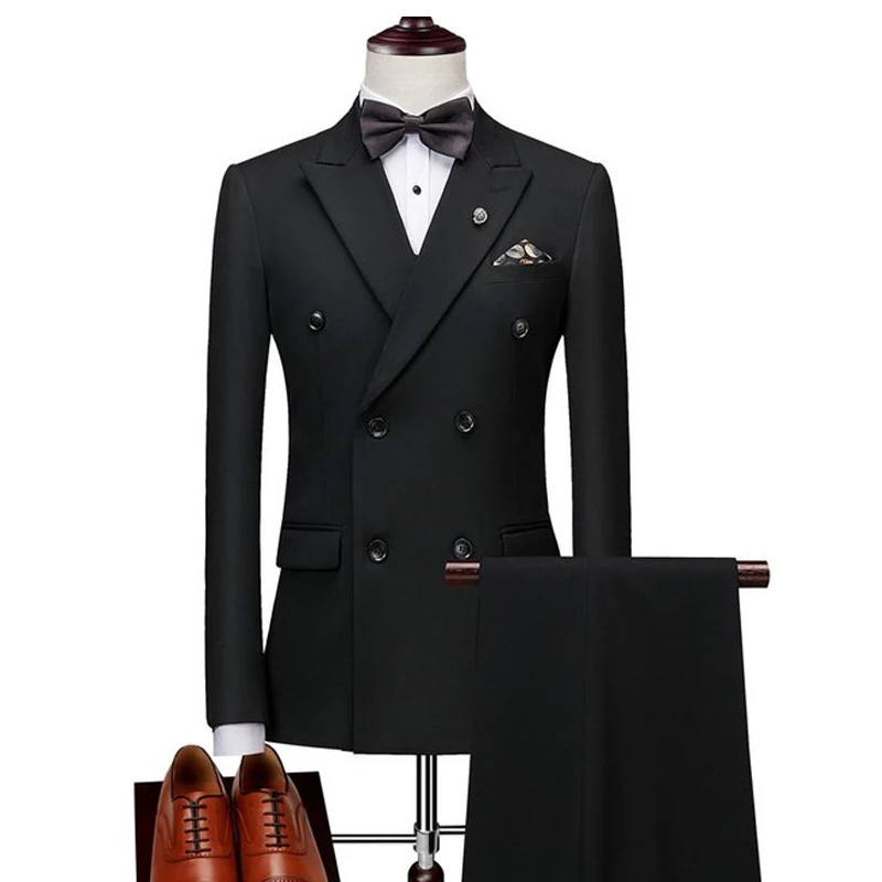 Двубортный облегающий мужской строгий свадебный смокинг для жениха, 2 предмета, куртка с брюками, мужской модный костюм, новинка
