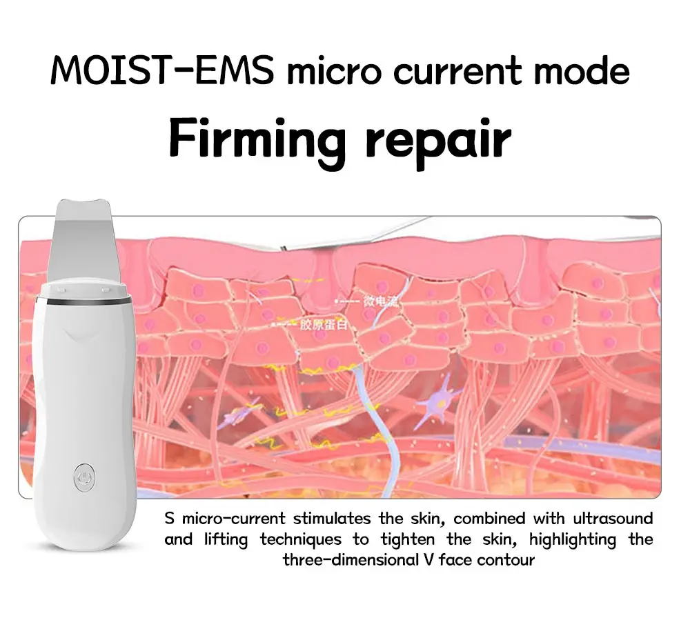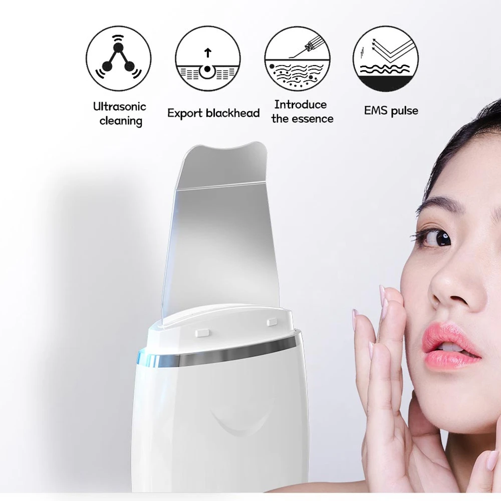 Ультразвуковой скребок для кожи, шпатель для лица с вибрацией, скребок для удаления черных точек, скребок для лица, лопатка для очистки, кавитационный пилинг