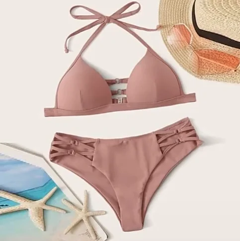Сексуальный Модный женский купальник с высокой талией, однотонный, с пуш-ап, пляжная одежда, бикини из двух частей