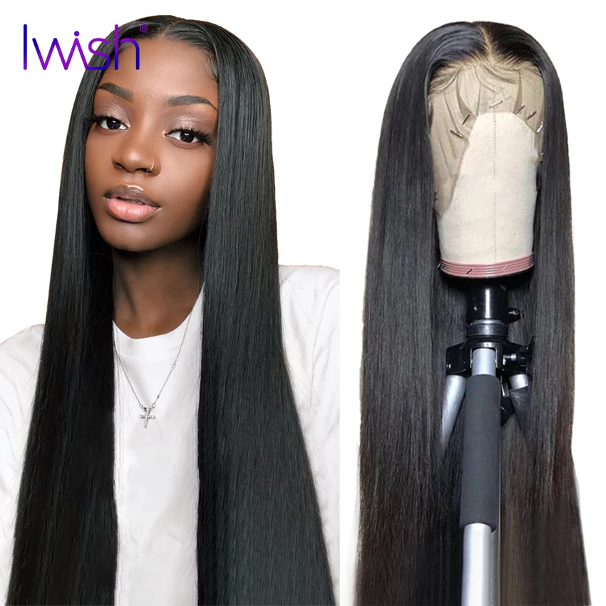 HD прозрачные кружевные парики 13x6 кружевные передние человеческие волосы парик Remy бразильские 28 дюймов прямые кружевные передние парики для женщин IWISH