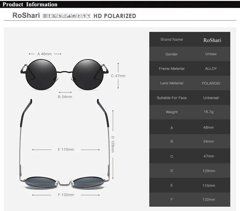 ✔Рошари®Круглые Солнцезащитные очки поставляются с поляризованными линзами, которые мы тестировали с течением времени. Поляризация может уменьшить блики, отражающиеся от дорог, водоемов, снега и других горизонтальных поверхностей. Восстанавливает истинный цвет, устраняет отраженный светильник и рассеянный светильник. Между тем, защита UV400 покрытие Блокирует 100% вредных UVA и UVB лучей. Независимо от того, едете ли вы, занимаетесь рыбной ловлей или отдыхаете на пляже, Просто расслабьтесь.✔Удобное ношение: Нет необходимости беспокоиться о том, что солнцезащитные очки могут быть плотными для вас. Мы используем гибкие металлические Пружинные петли для улучшения вашего комфорта при ношении, что делает руки лучше подходящими для вашего размера головы и формы лица. Мы подобрали ультра-светильник для очков и поляризованных линз, чтобы вы не уставали после долгого ношения.✔Идеальная круглая рамка в стиле ретро, уникальность и индивидуальность: полированная оправа из металлического сплава, гладкая кромка, мягкие силиконовые носоупоры, идеальная легкая круглая Защита от солнца, которая позволит вам влюбиться в нее. Линзы TAC имеют высокую ударопрочность, лучшую устойчивость к царапинам и передачу на светильник, чем другие. Красочные оправы и несколько зеркальных линз сделают вас более подходящими для ваших нарядов, чтобы показать ваше очарование!