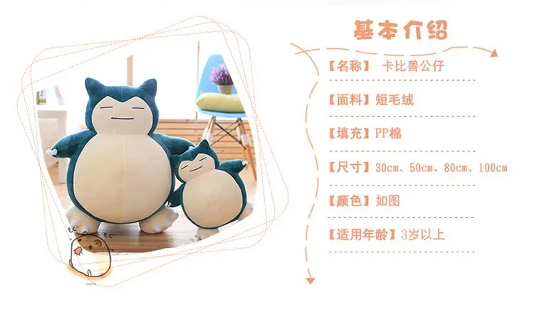 Плюшевая снорлакс кукла большого размера мягкие игрушки милый медве...