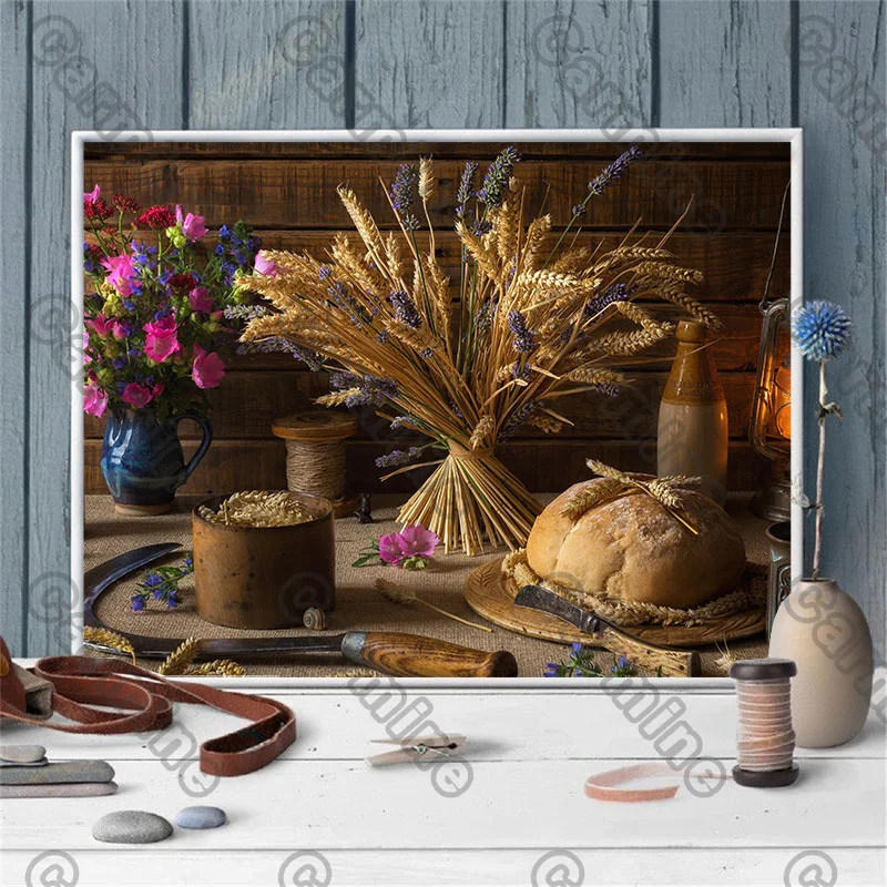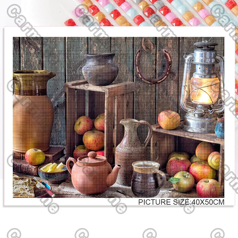 Алмазная живопись сделай сам, обед, фрукты, натюрморт, алмазная круглая Алмазная отделка, настраиваемое настенное украшение, безрамный стиль