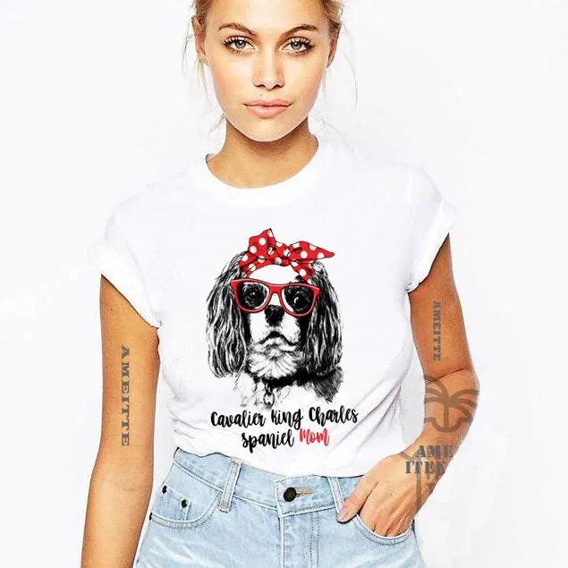 Умный щенок кокер-спаниель на английском и американском стиле арт печати t-рубашка Летняя женская обувь белого цвета с короткими рукавами Повседневные футболки; Модные милые топы для девочек