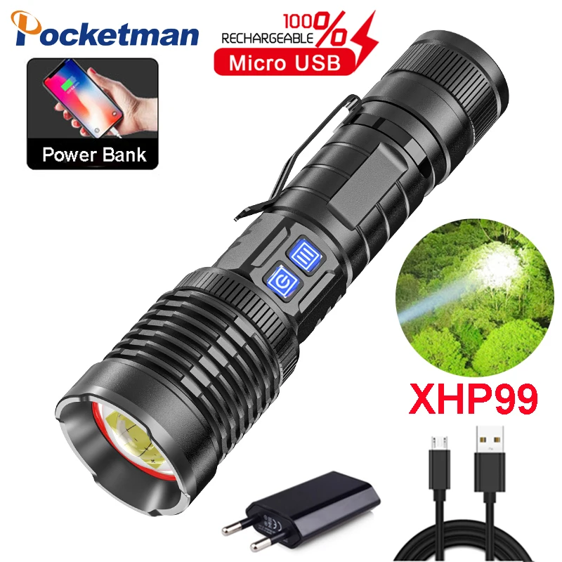 Светодиодный фонарик Pocketman XHP99, перезаряжаемый от USB светодиодный фонарь онарик XHP50, фонарик для кемпинга, используется 18650 26650 с держателем для ручки