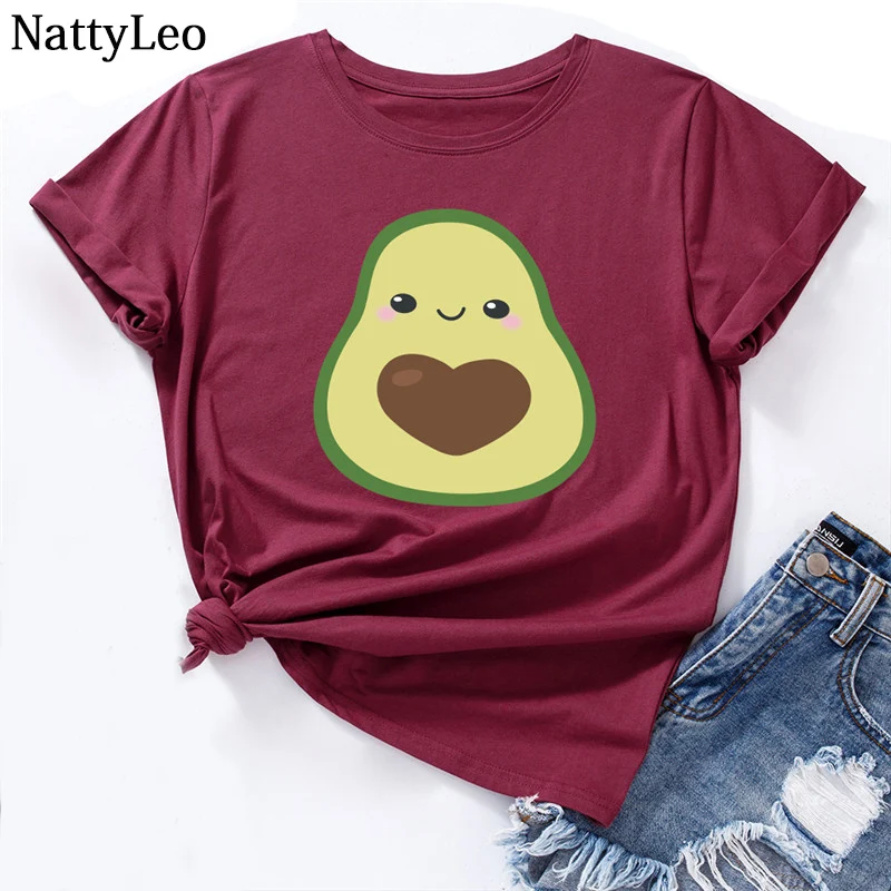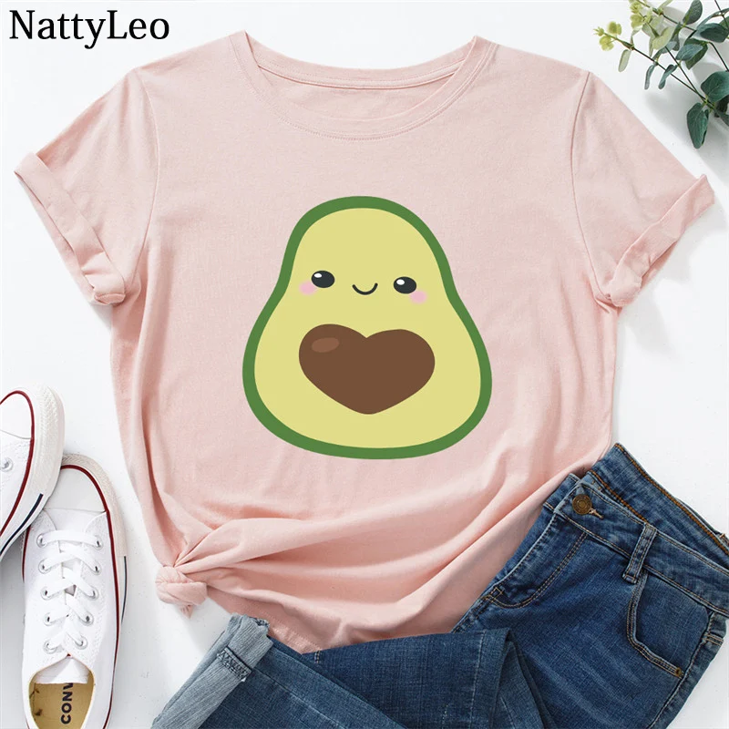 Летняя женская рубашка, милые рубашки с принтом авокадо, футболки с круглым вырезом и коротким рукавом, женская модная одежда, милые топы, розовая одежда