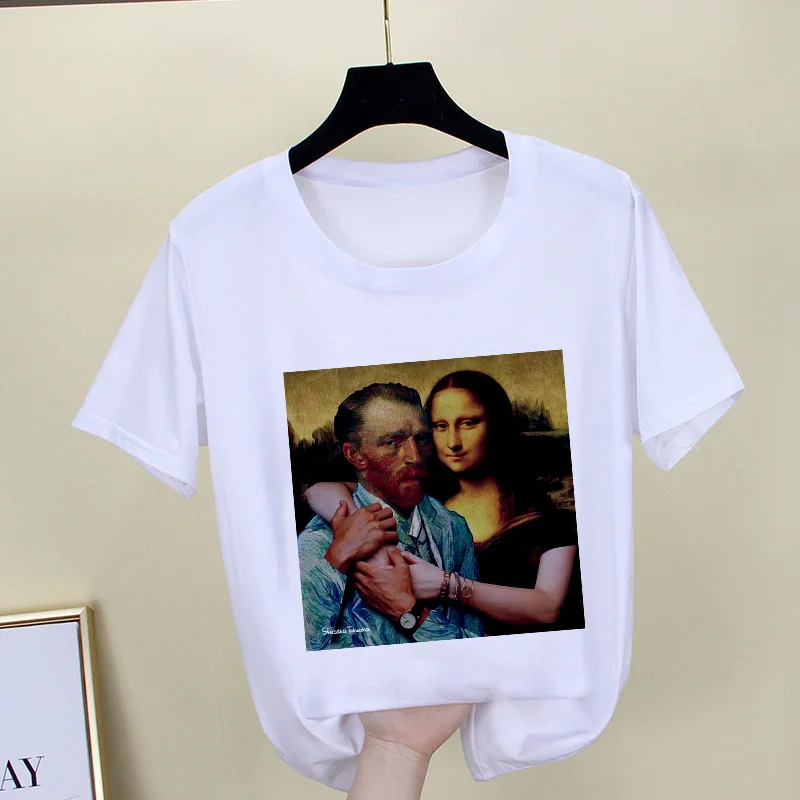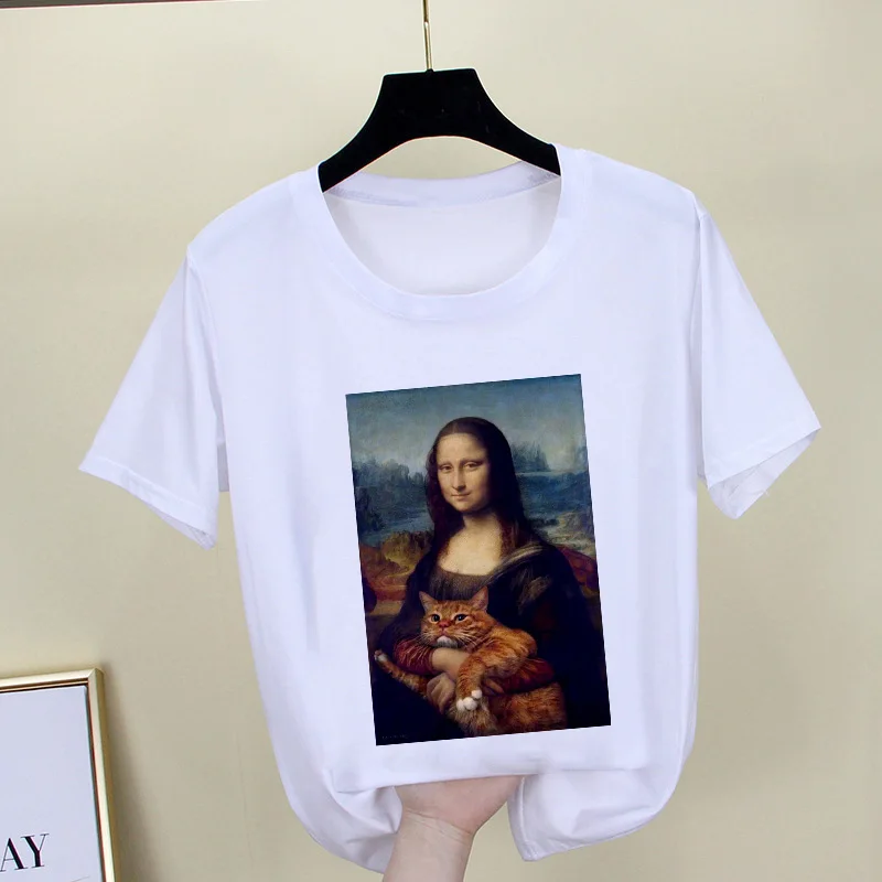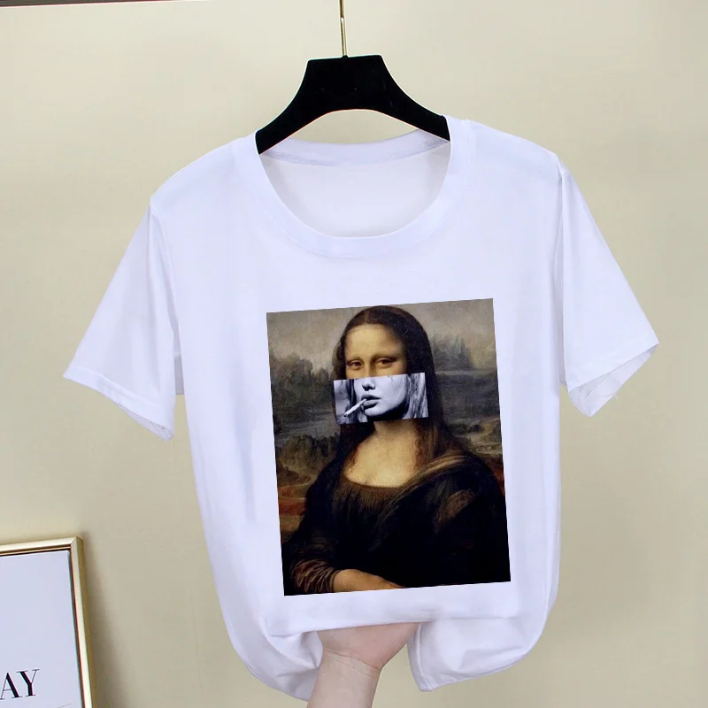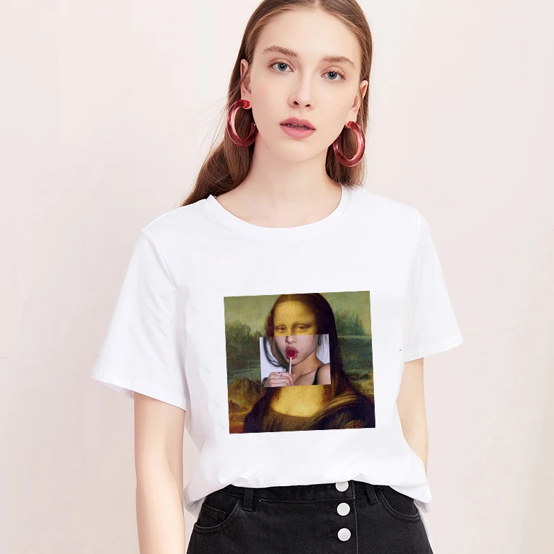 2020 новые летние футболки с принтом Моны Лизы, женские Забавные фу...