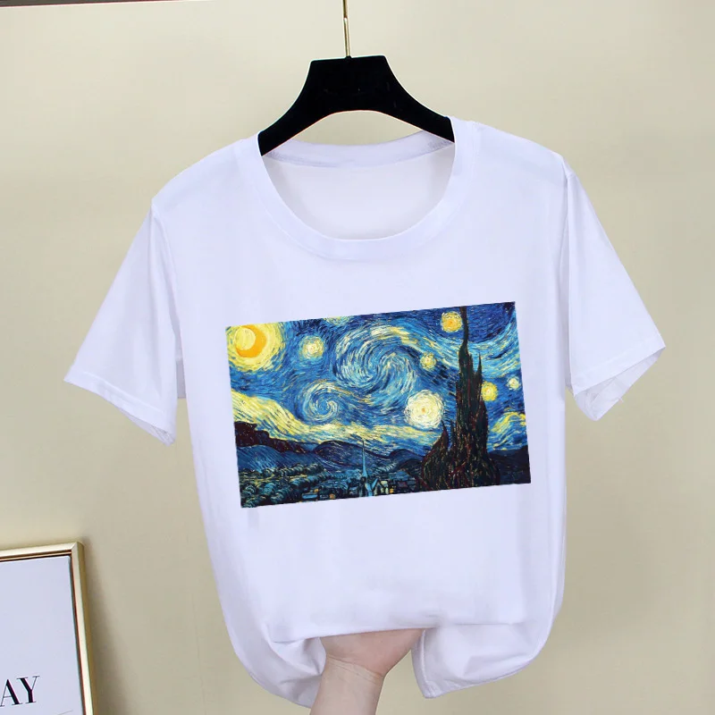 Футболка женская, с принтом Ван Гога, забавная, тонкая, в стиле Хар...