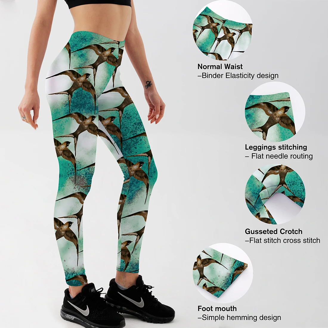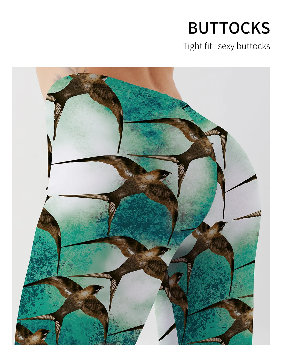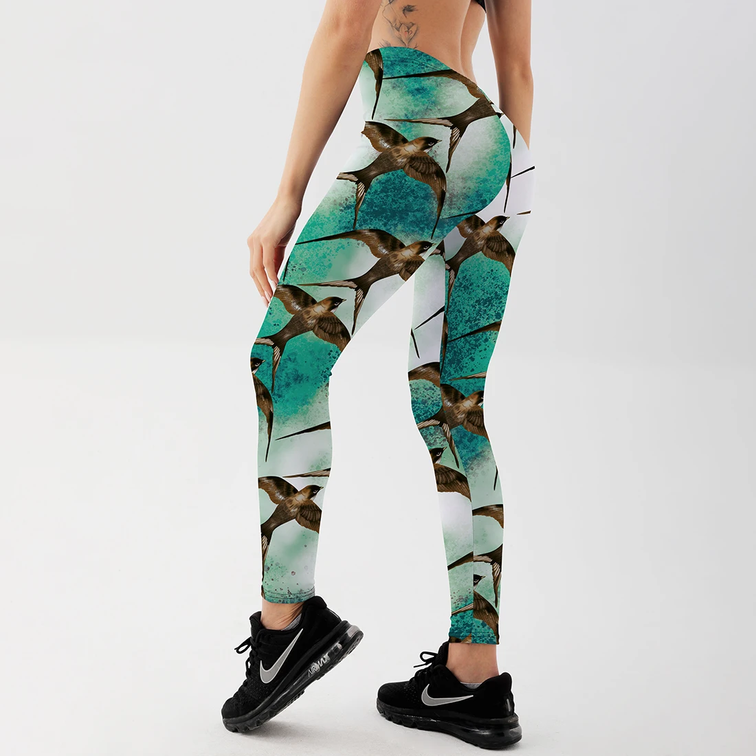 Женские леггинсы с принтом Ласточка и эффектом пуш-ап