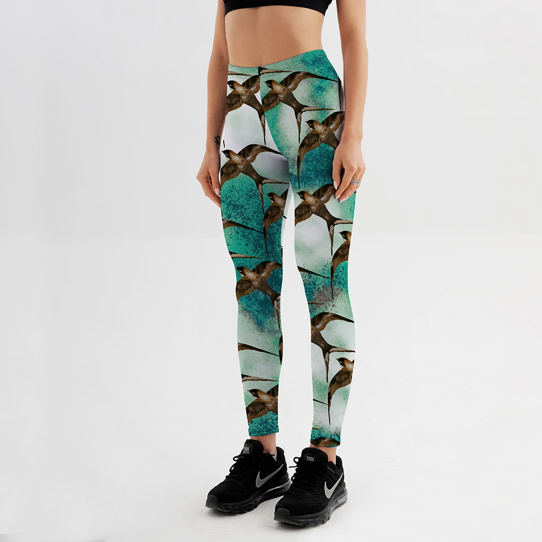 Цветные легинсы с принтом птиц и цветов, женские сексуальные легинс...