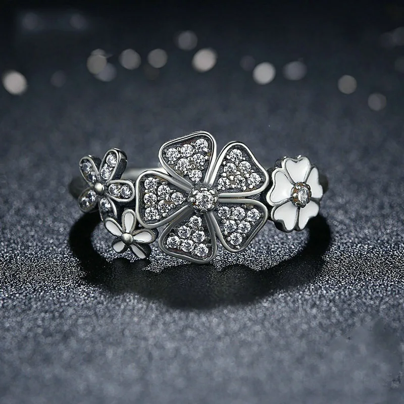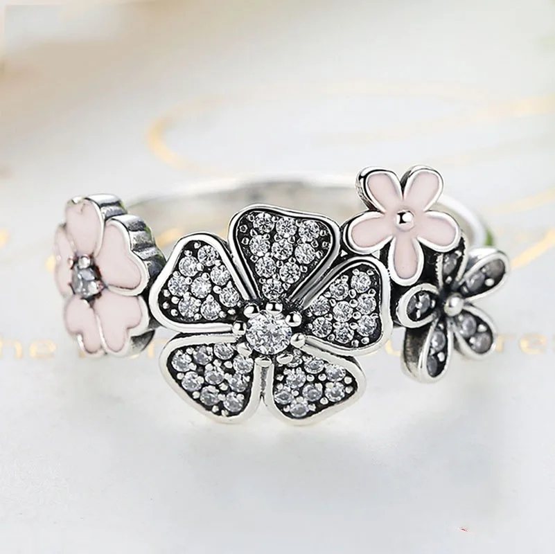 Женское эмалированное кольцо с цветком, маленькое обручальное кольцо с кристаллами, ювелирные изделия для девочек, 2022