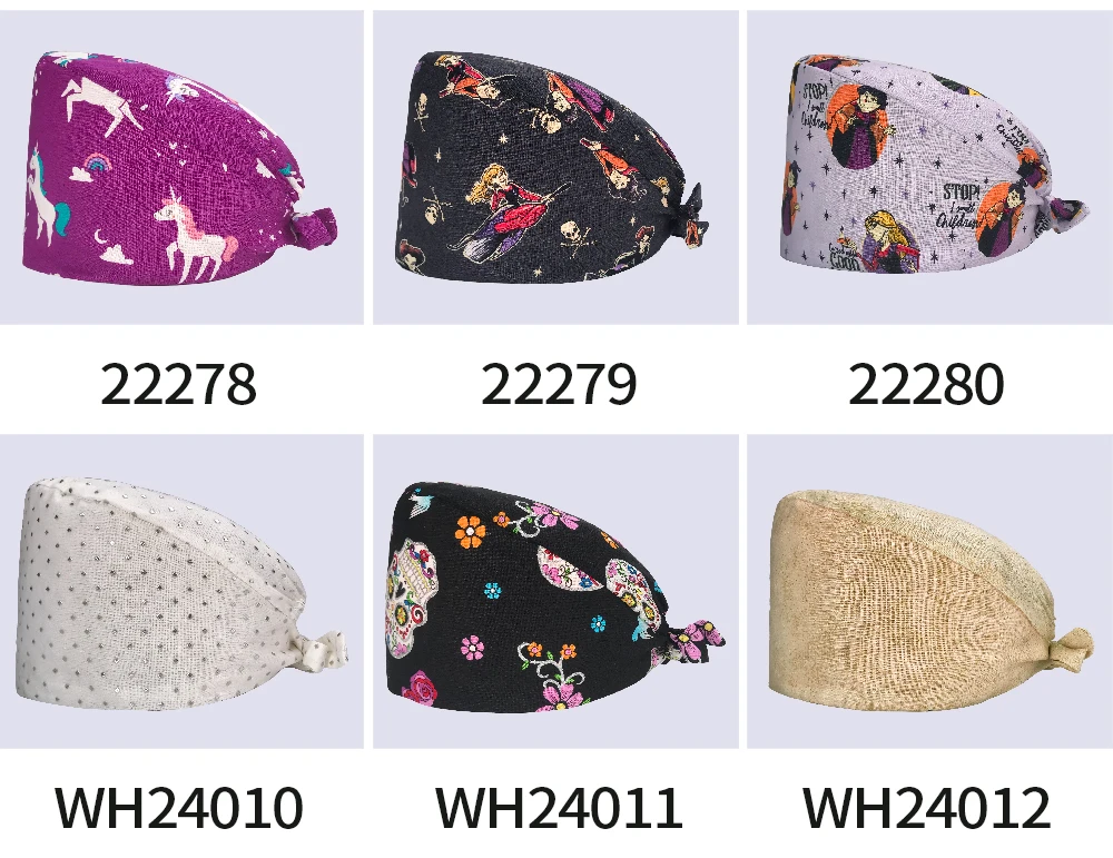 Многоцветный унисекс 100% хлопок Tieback стоматолог хирургический косметичка в больнице Шапки кормящих скрабы Головными Уборами животные клиника медицинская шапочка