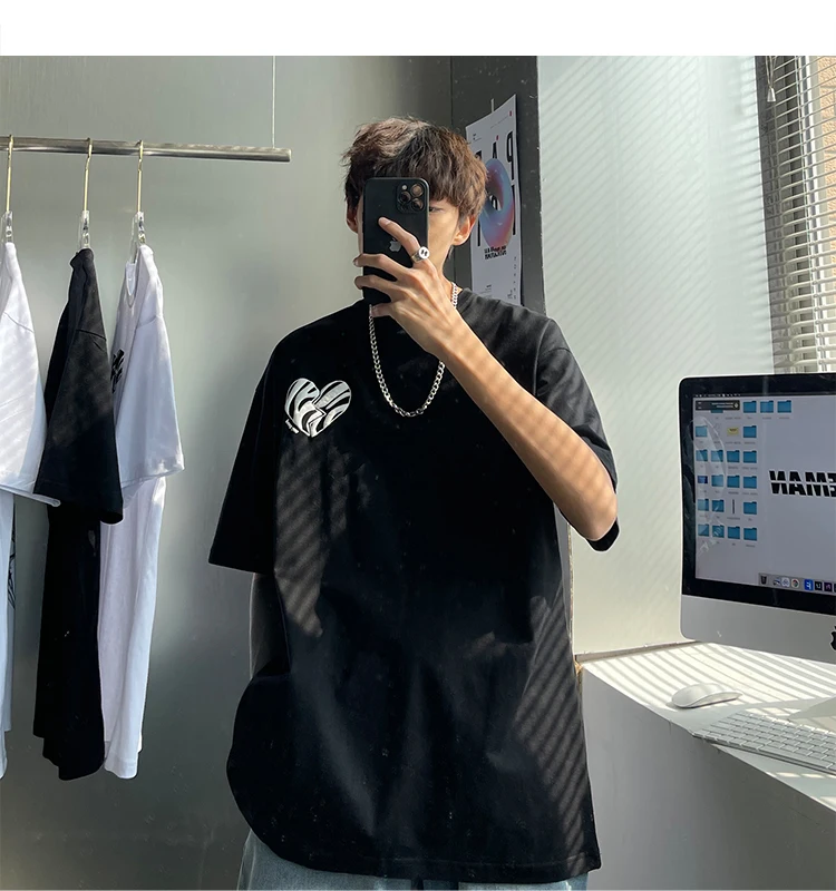 Футболка LAPPSTER мужская с изображением разбитого сердца, Повседневная модная рубашка в Корейском стиле, с винтажным принтом, в стиле Харадзюку, лето 2022