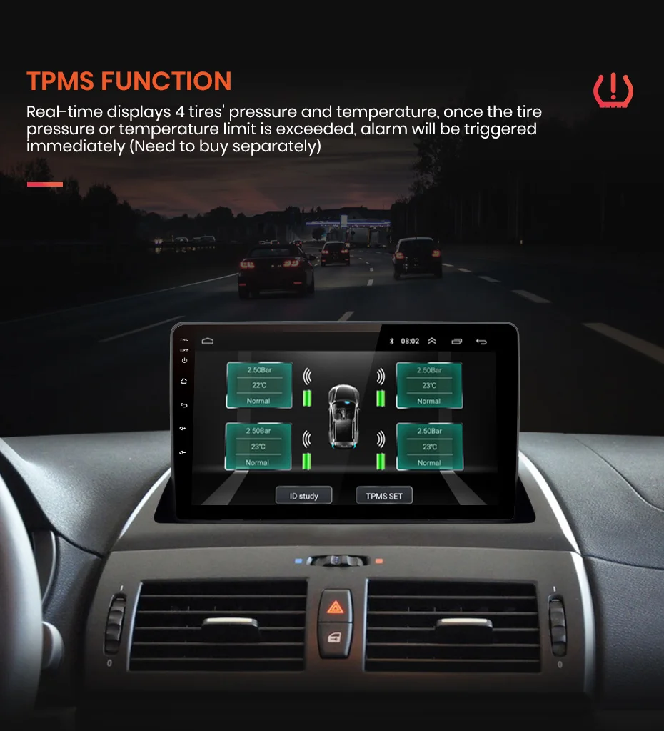 Отображает 4 давления и температуры в режиме реального времени. Как только давление или температура в шинах будут необычными, сразу же будет сигнал тревоги.