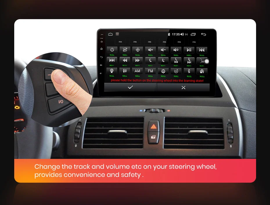 > Совместимость с большинством функций управления рулевого колеса.Легко переключать песни, каналы и регулировать громкость, обеспечивая вам более безопасное и приятное путешествие.> Как сделать управление рулевым колесом?Пожалуйста, настройте один из двух способов и выберите «BMW-X3» или «VW»/«Volkswagen» в качестве модели автомобиля.Https://ae01.alicdn.com/kf/Hf55941f7eec64e6cb2b9286185d02390Z.pngHttps://ae01.alicdn.com/kf/H2bc5d862416744f8b5bb8f2074fd7255N.png
