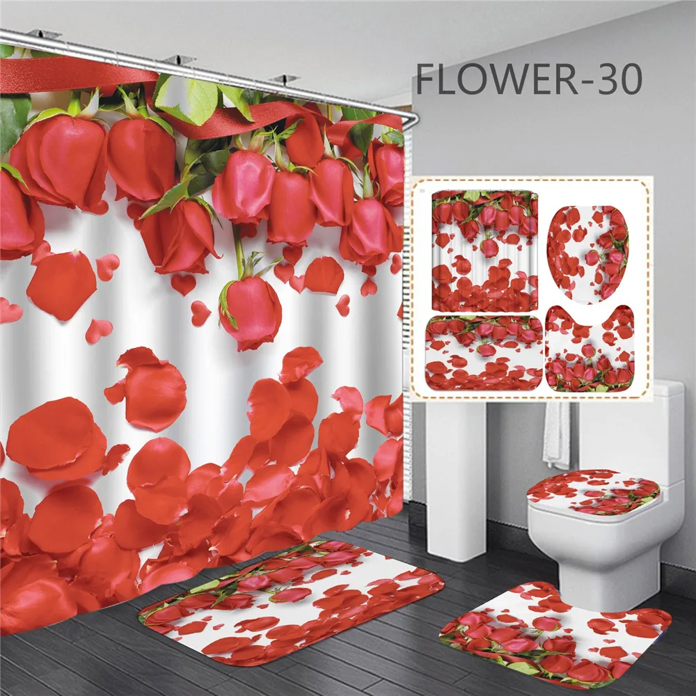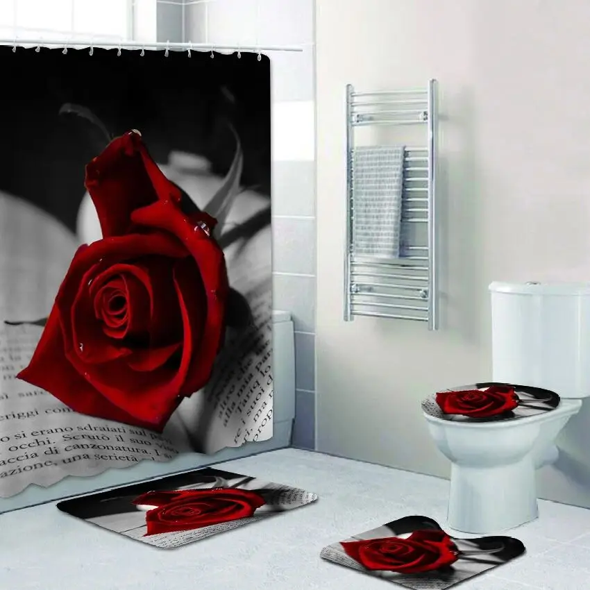 Занавеска для душа с 3D Цифровым принтом роз, водонепроницаемая Полиэстеровая s-образная красная занавеска для ванной, коврики для ванной