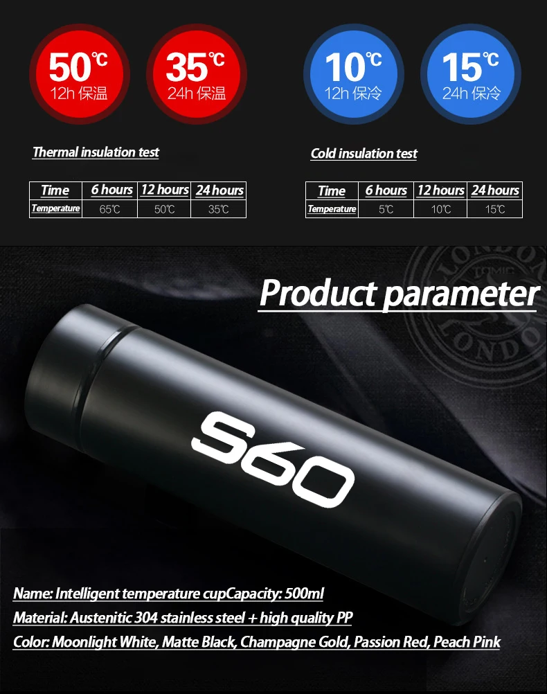 1. Интеллектуальный дисплей температуры: встроенный высокочувствительный датчик температуры, вам нужно только поместить палец на крышку бутылки, и светодиодный дисплей будет отображать температуру в бутылке.