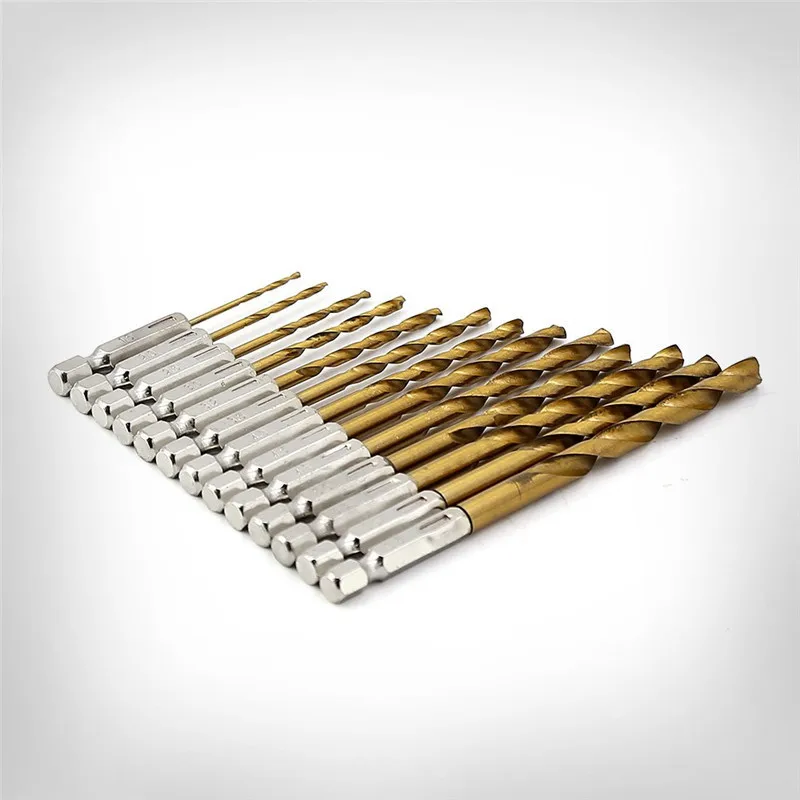 13 шт.лот быстрорежущей стали HSS набор сверл с титановым покрытием 14 шестигранный хвостовик 1,5-6,5 мм длиной сверла по металлу