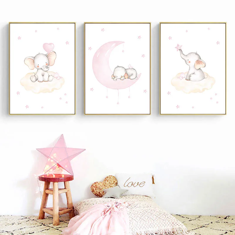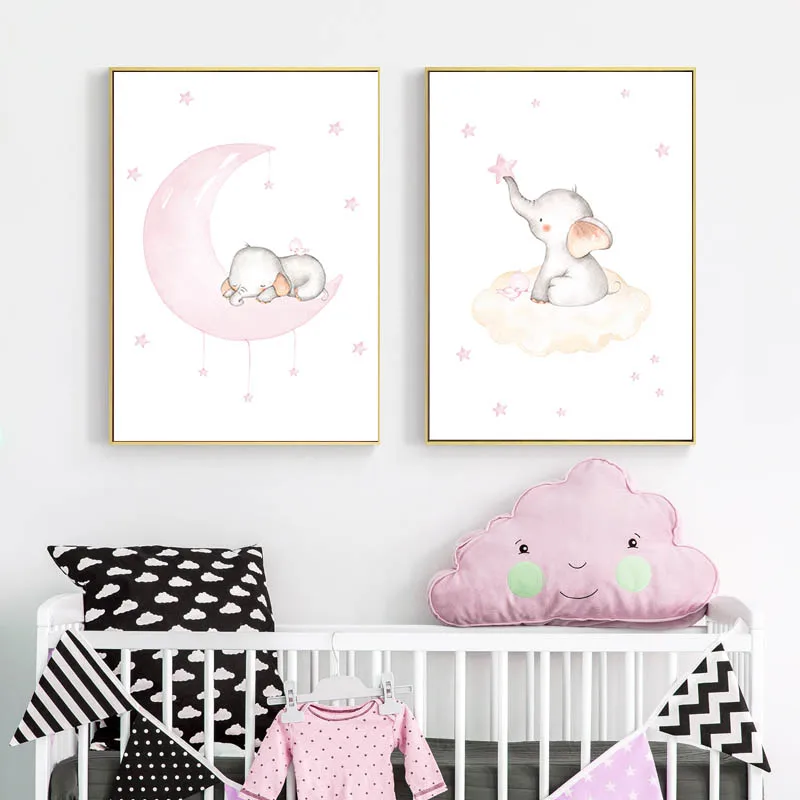 Детская Настенная картина для детской комнаты, Постер со слоном и в...