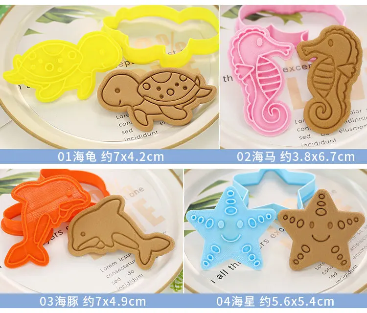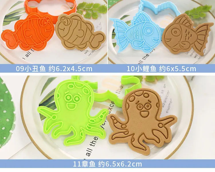 3D мультяшная форма для печенья с морскими животными, домашний прес...