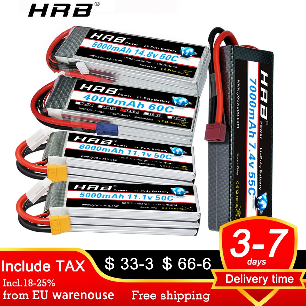 Аккумуляторная батарея HRB 6S 4S 3S lipo 2200 мА ч, 3300 мА ч, 4000 мА ч, 5000 мА ч, Разъем XT60 Deans для дрона Arrma Losi, грузовика, лодки
