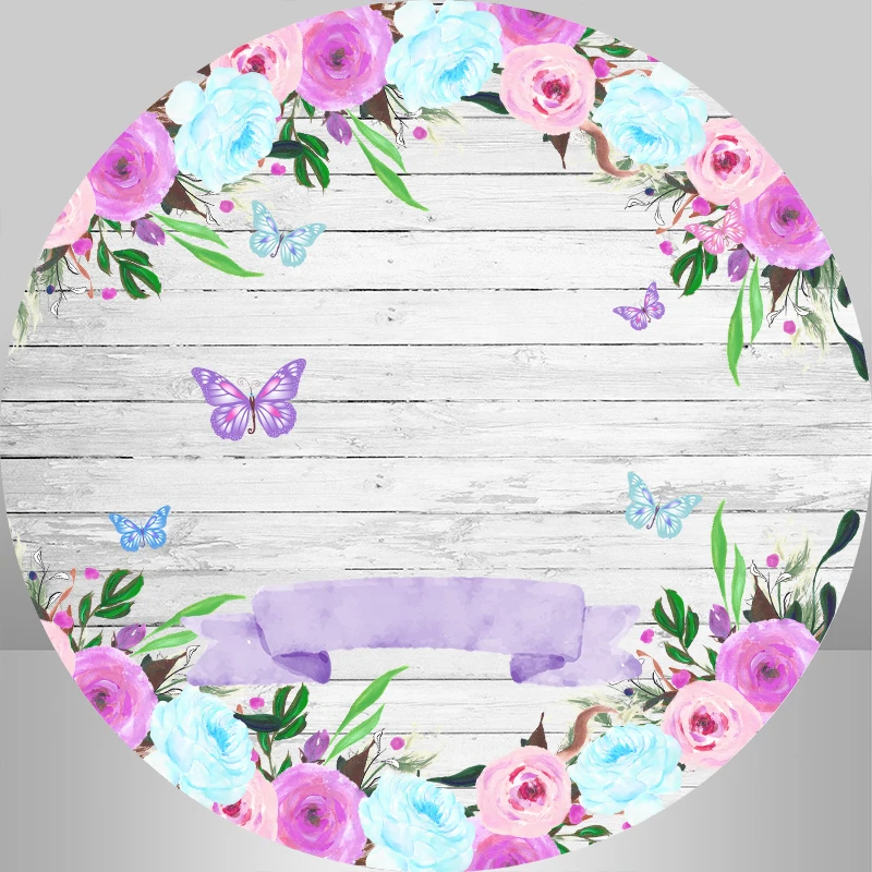 Серый деревянный круглый Backgrond изготовленный на заказ для маленьких девочек 1st на день рождения вечерние Декор Конфеты Таблица Баннер бабочка круг фон с эластичной резинкой