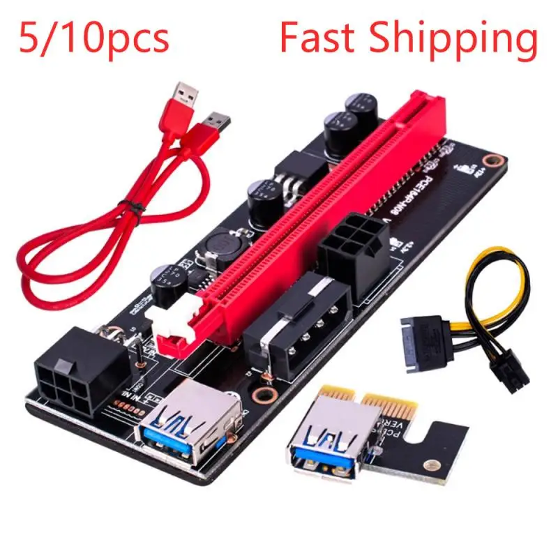 Райзер VER009 USB 3,0 PCI-E VER 009S Express 1X 4x 8x 16x, Удлинительный Райзер, переходник, карта SATA, 15-контактный на 6-контактный кабель питания, 10 шт.