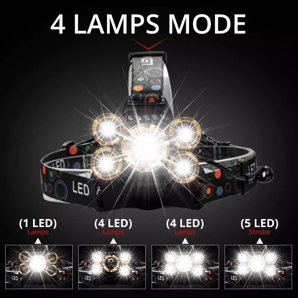 Налобный фонарь D2, мощный светодиодный налобный фонарь, заряжаемый, индукционный, 5 светодиодный, T6, налобный фонарь, аккумулятор 18650, лучше всего подходит для кемпинга, рыбалки