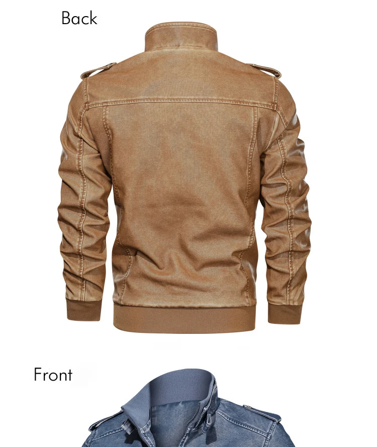 Мужская кожаная куртка-карго, мотоциклетная куртка цвета хаки, курт...