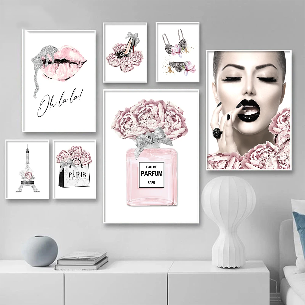 Модная Кисть для макияжа цветок парфюм алмазная живопись сексуальная леди губы Стразы искусство на высоких каблуках вышивка мозаика Картина декор