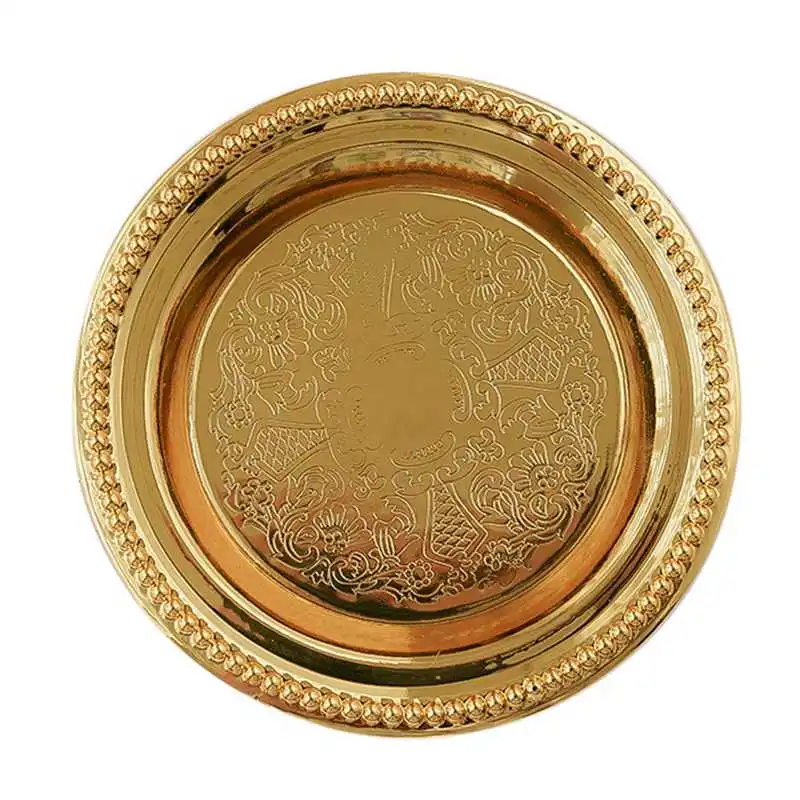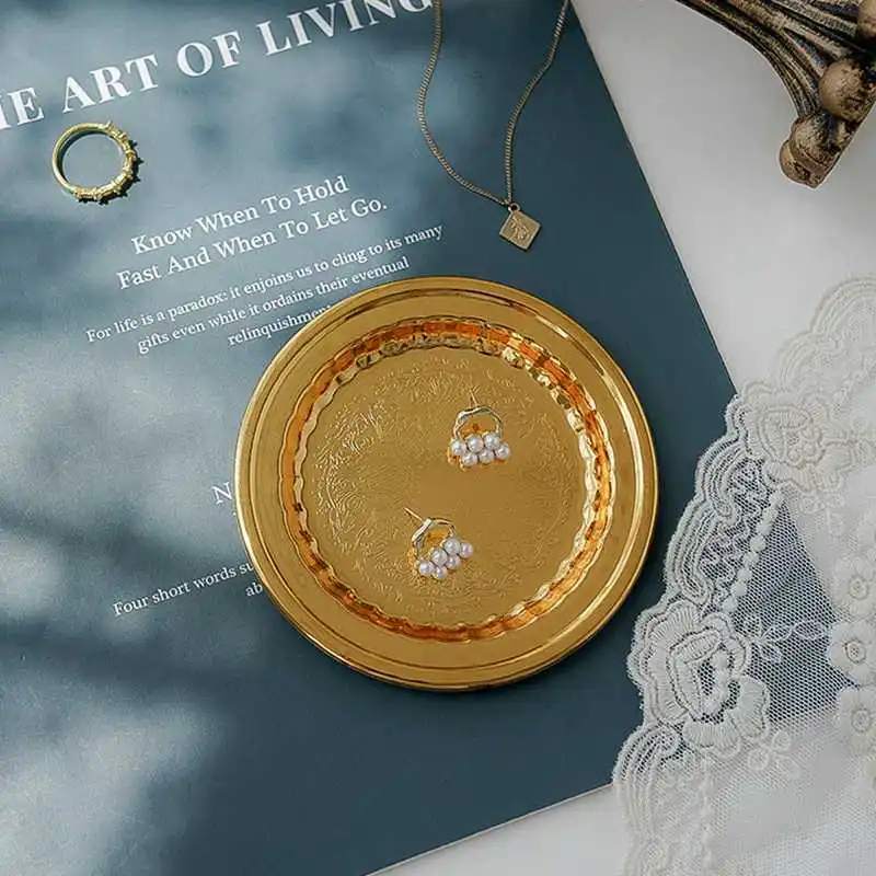 Золотой поднос для хранения в европейском стиле с фруктами, витрина для ювелирных изделий, кухонный круглые подносы для продуктов питания, реквизит для украшения фотографий