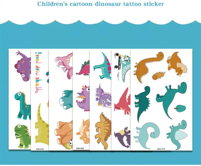 Динозавр татуировки наклейки водонепроницаемые Дети мальчик милый м...