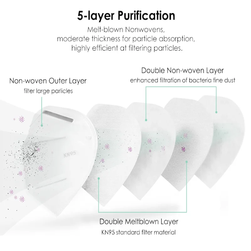 Противовирусная 5-слойная маска KN95 для лица с фильтром PM2.5, 30 ...