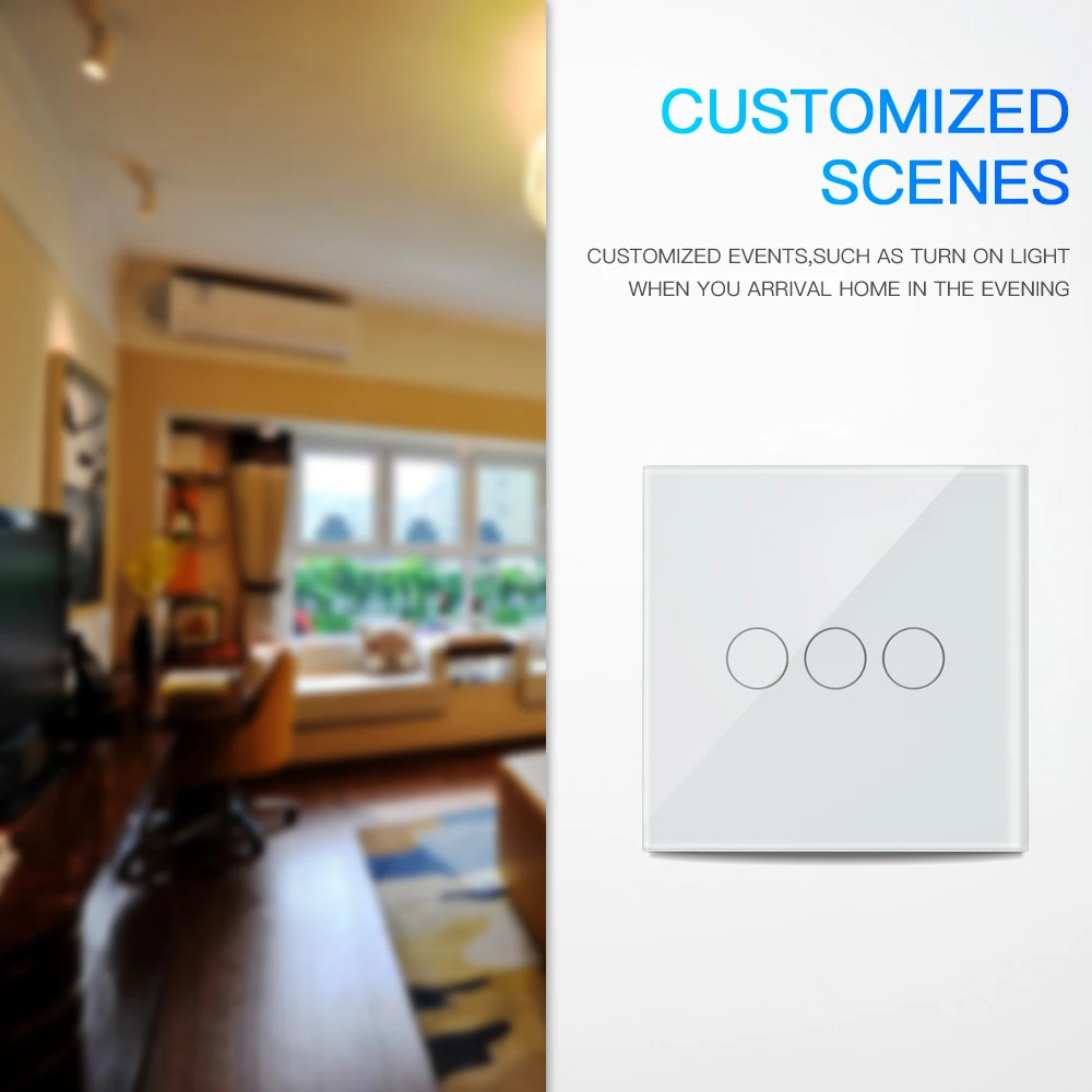 Умный выключатель Tuya Zigbee со стеклянной панелью, сенсорный светильник ель со стеклянной панелью европейского стандарта, дистанционное управление с помощью приложения Alexa Google Home