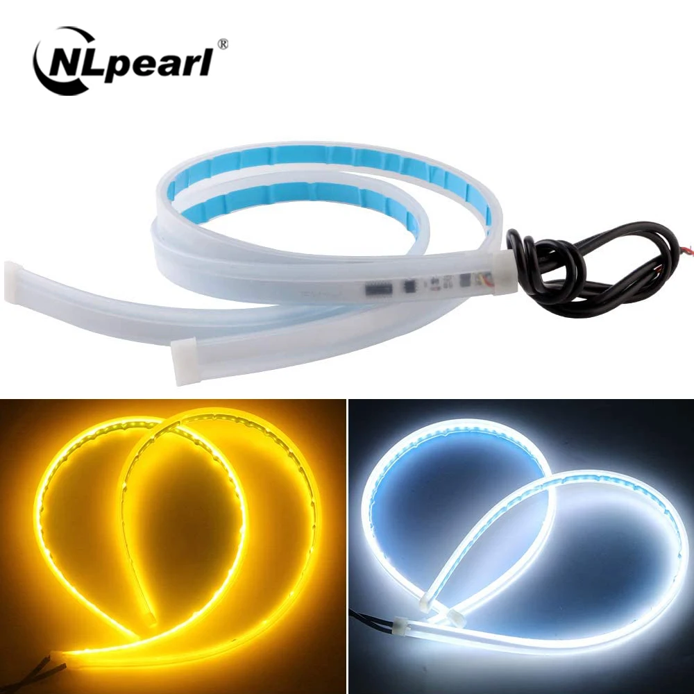 NLpearl 1 пара Гибкая DRL светодиодная лента с поворотным сигналом желтый 12 в мягкий трубчатый направляющий DRL светодиодный дневный ходовой светильник для автомобиля головной светильник s
